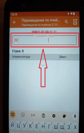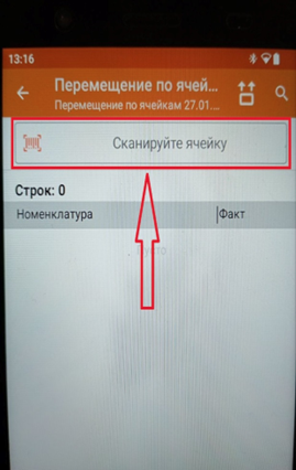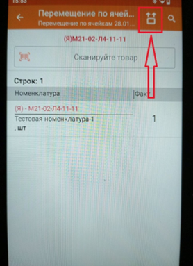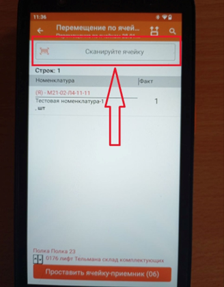 Сканировать товар в ячейке. Сканируем Тестовую номенклатуру.