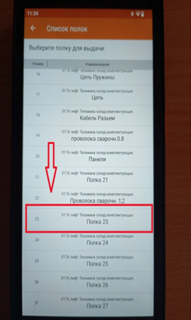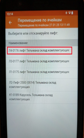 Вариант-1. (На примере рабочего лифта Дикома). На ТСД открыть Перемещение между ячейками. Выдать полку.