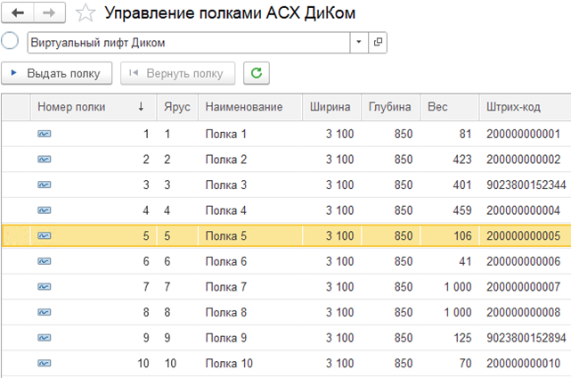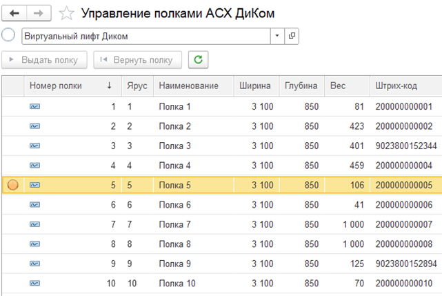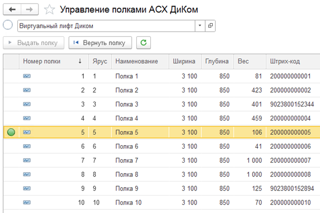 Управление в АСХ – дает возможность управлять полками непосредственно с лифта;