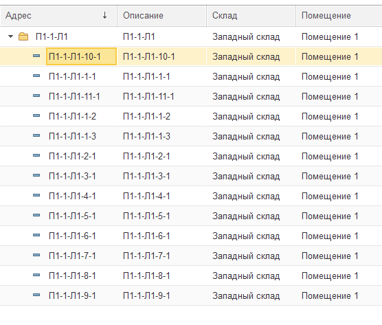 Позиция – это место хранения внутри полки. Если внутри полки нет дробления на позиции, то конечный адрес полки можно указать, например, с цифрой 01 на конце.