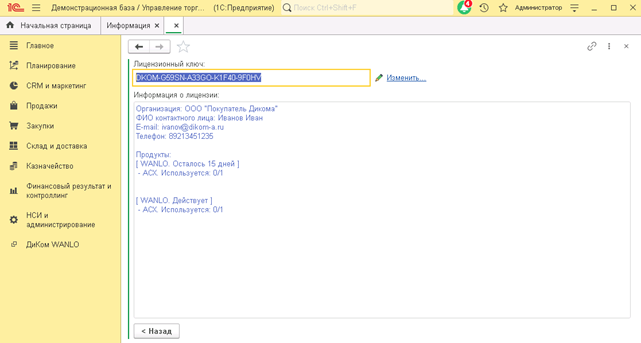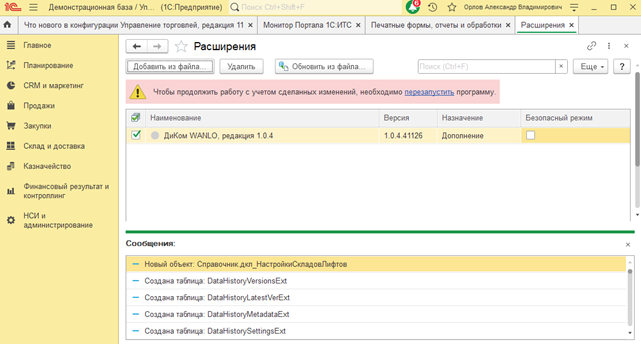 Установка и настройка расширения "Диком WANLO" в "1С:Предприятие 8"