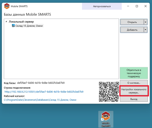 Если выбрать базу "1С:Предприятие 8" без названия "Диком", то будет установлен стандартный шаблон настроек "Mobile SMARTS" без поддержки "Диком АСХ" и интеграция работать не будет.