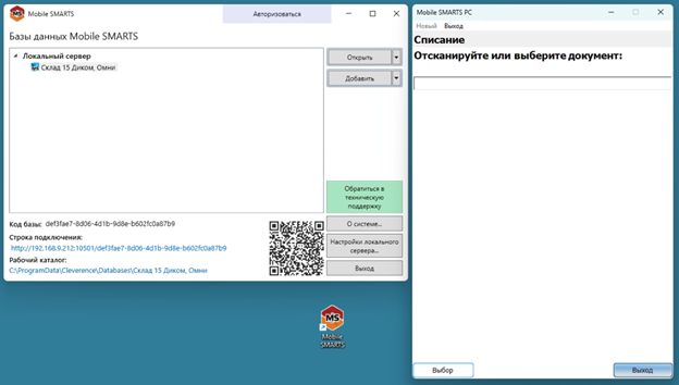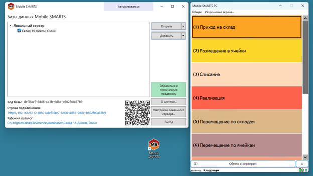 32. В панели управления Mobile SMARTS открыть «Клиент для ПК» он же на эмулятор ТСД.