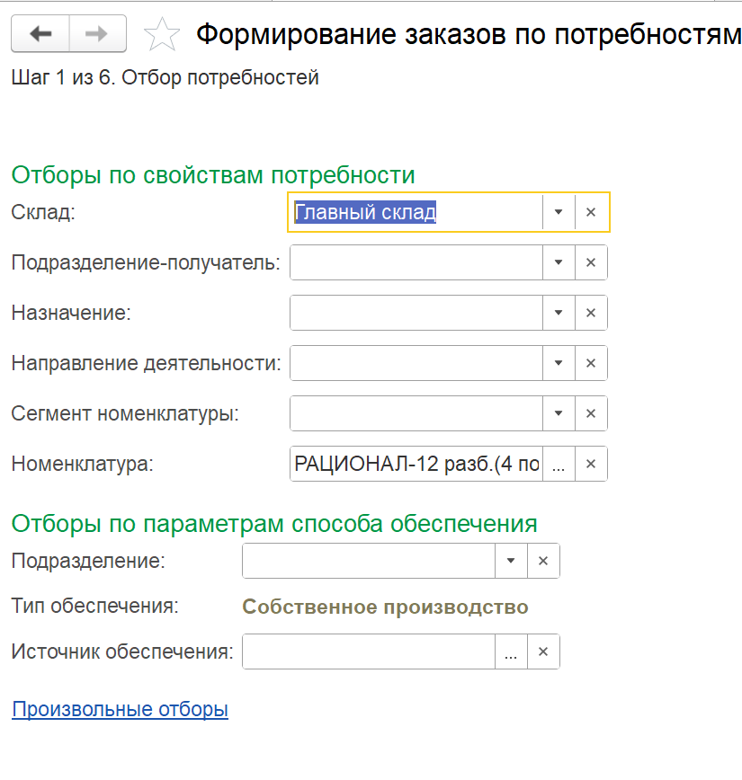 На этом шаге вы указываете, для каких потребностей будут формироваться заказы.